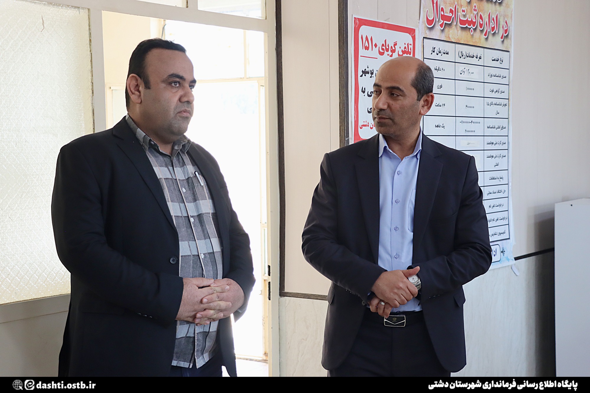 رضا مقاتلی در بازدید از اداره ثبت احوال شهرستان دشتی، با تبریک سوم دی‌ماه روز ثبت احوال، از تلاش‌ها، اقدامات و خدمات رئیس و کارکنان این مجموعه در ارائه خدمات مطلوب به مردم قدردانی کرد.