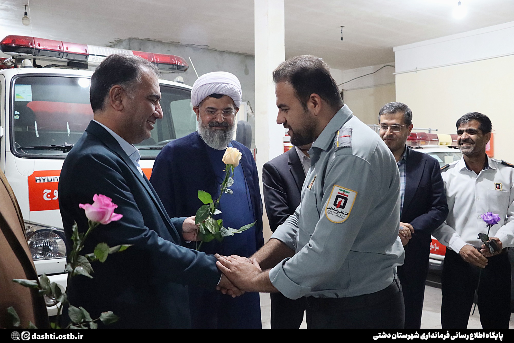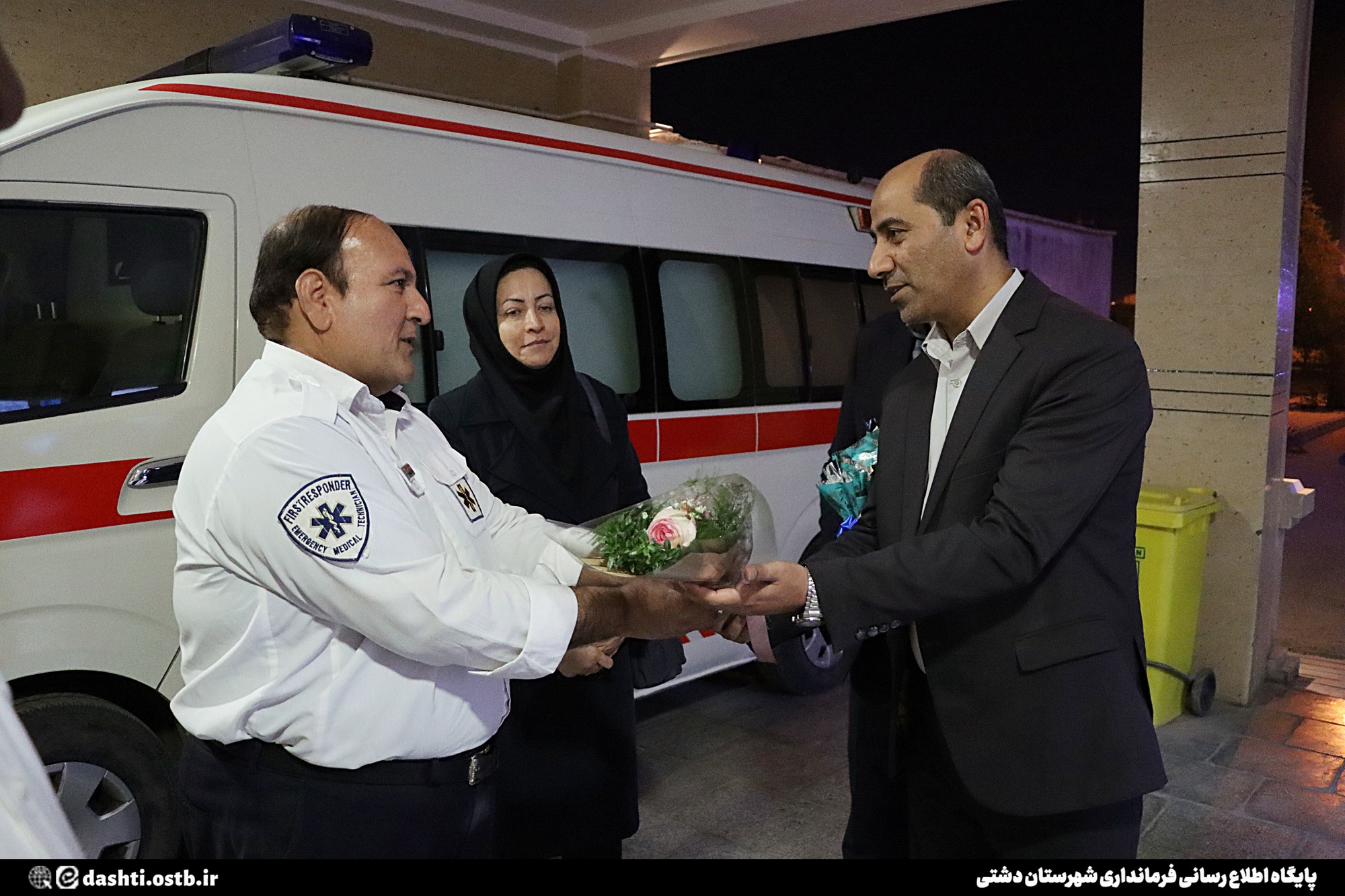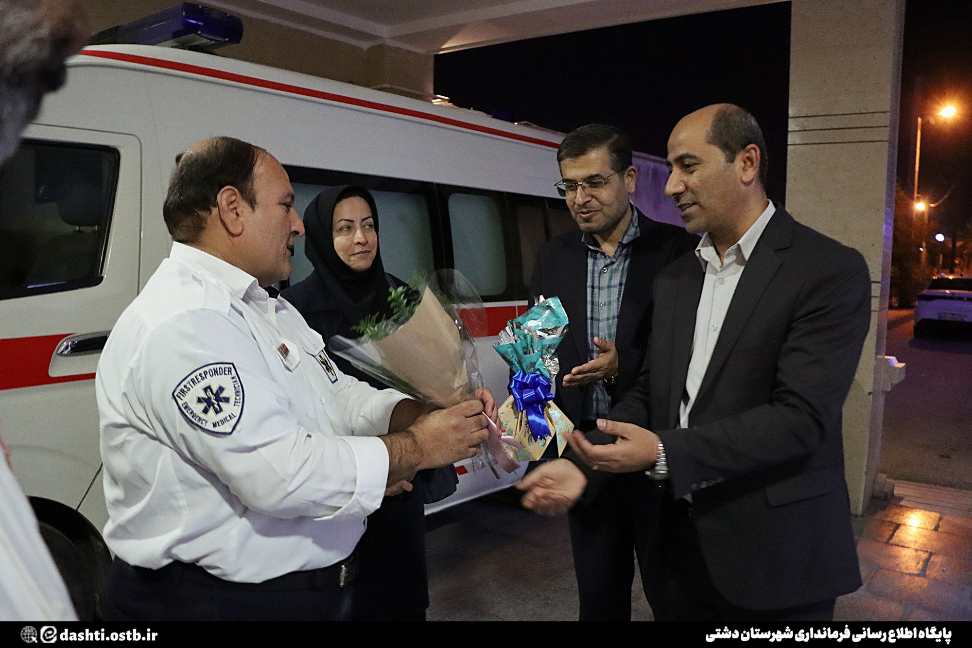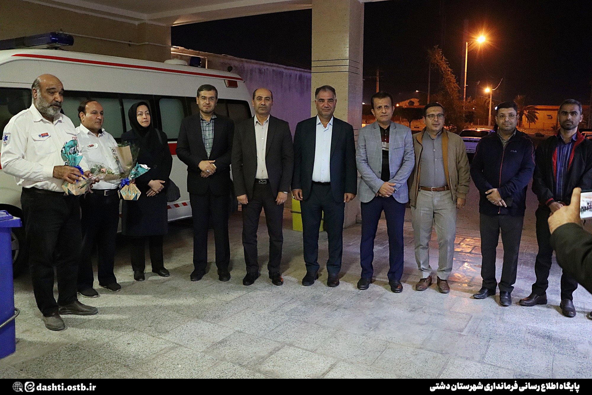 دیدار شب یلدایی فرماندار دشتی و امام جمعه شهرستان با کارکنان اورژانس ۱۱۵ و آتشنشانی خورموج 1404/09/30 - 08:33 - تعداد بازدید: 92 - تعداد بازدیدکننده: 79 - کد خبر : 45780 - گروه خبری : فرماندار - تعداد نظرات : 0