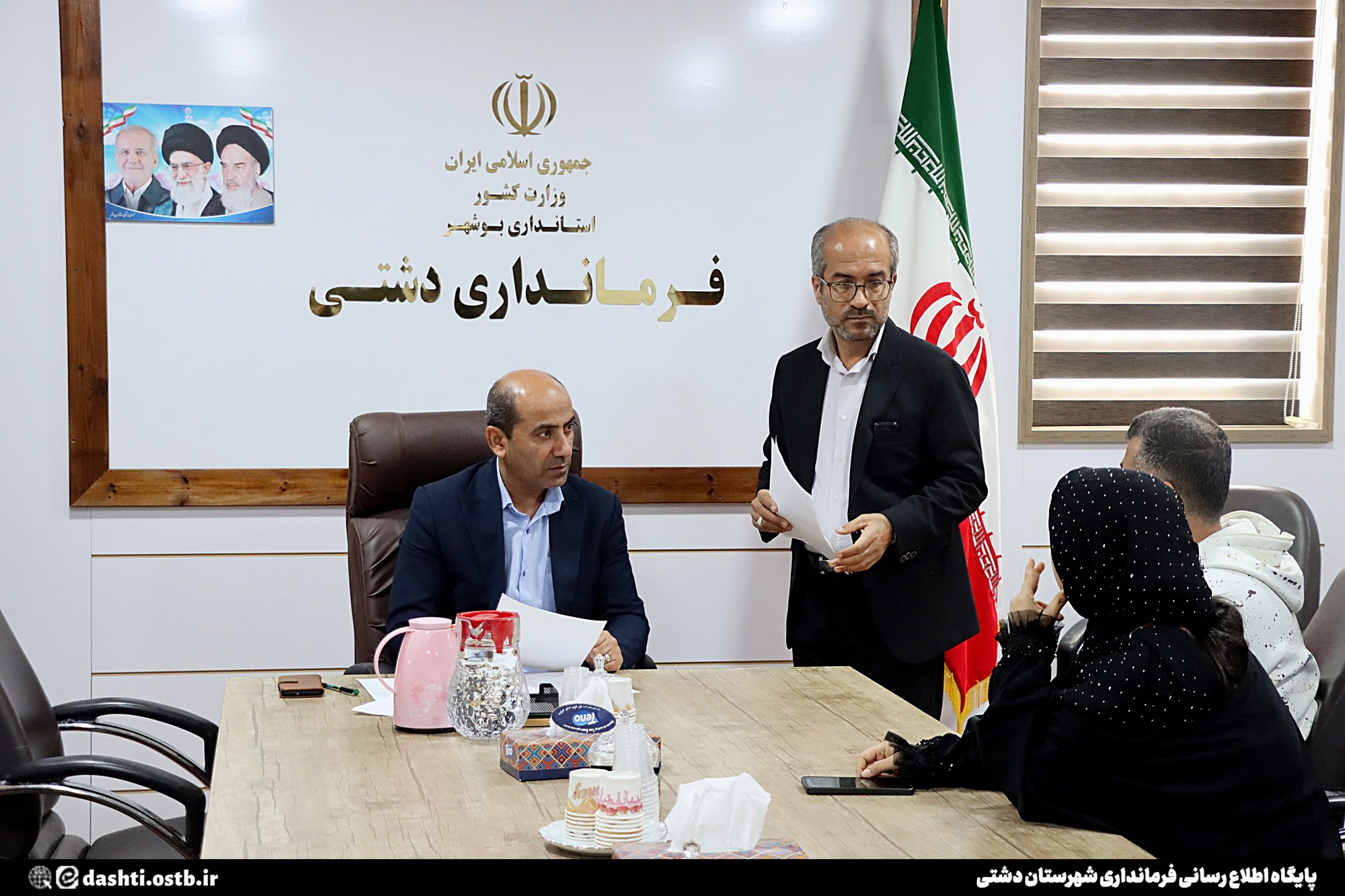 فرماندار دشتی به صورت چهره به چهره و بدون واسطه با شهروندان دیدار و از نزدیک مسائل و مشکلات آنها را پیگیری کرد.