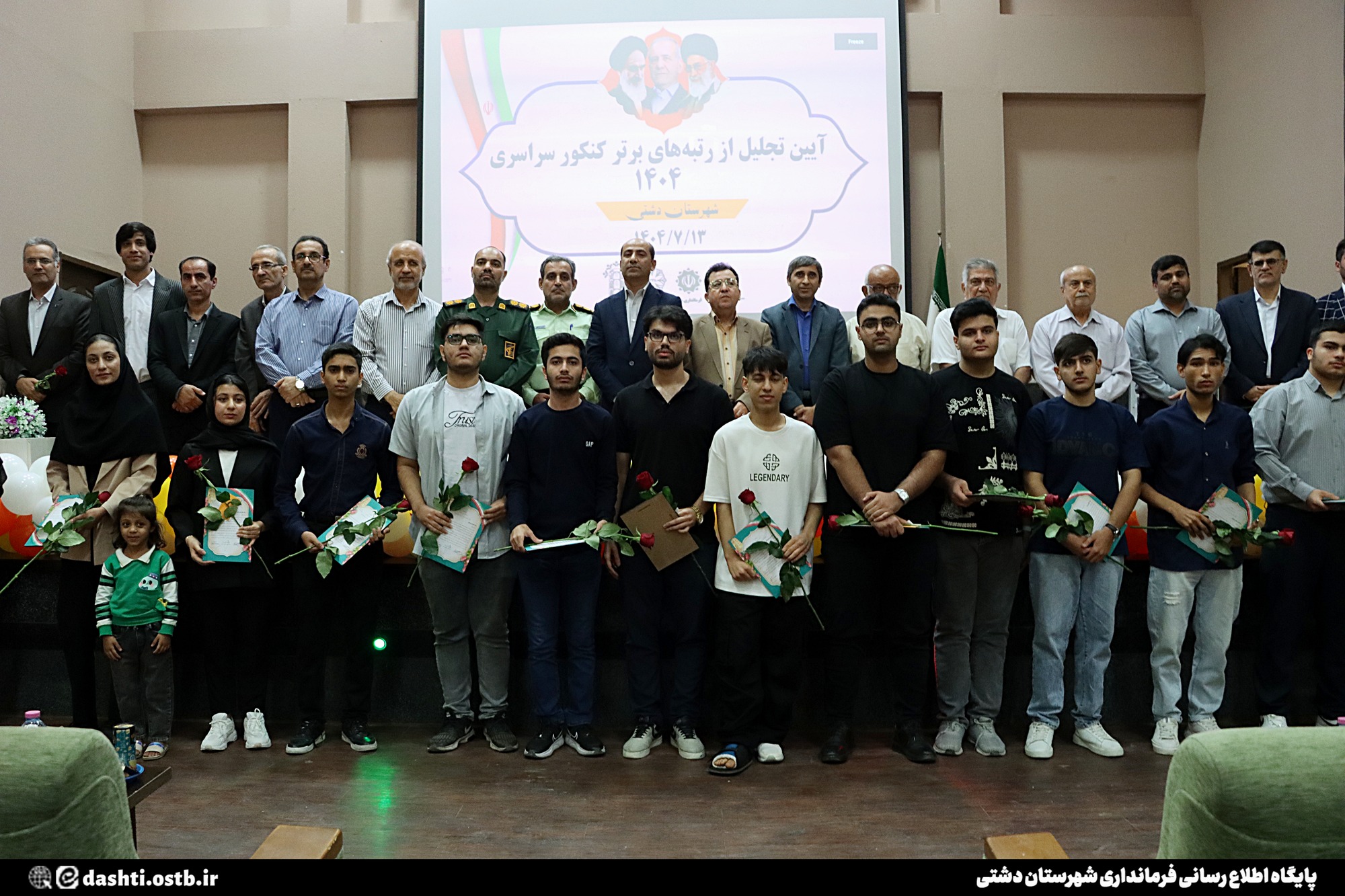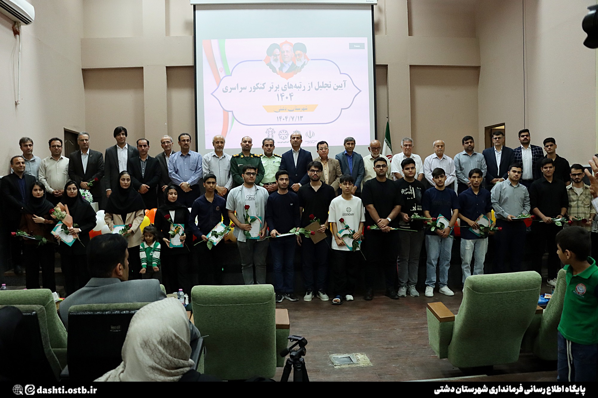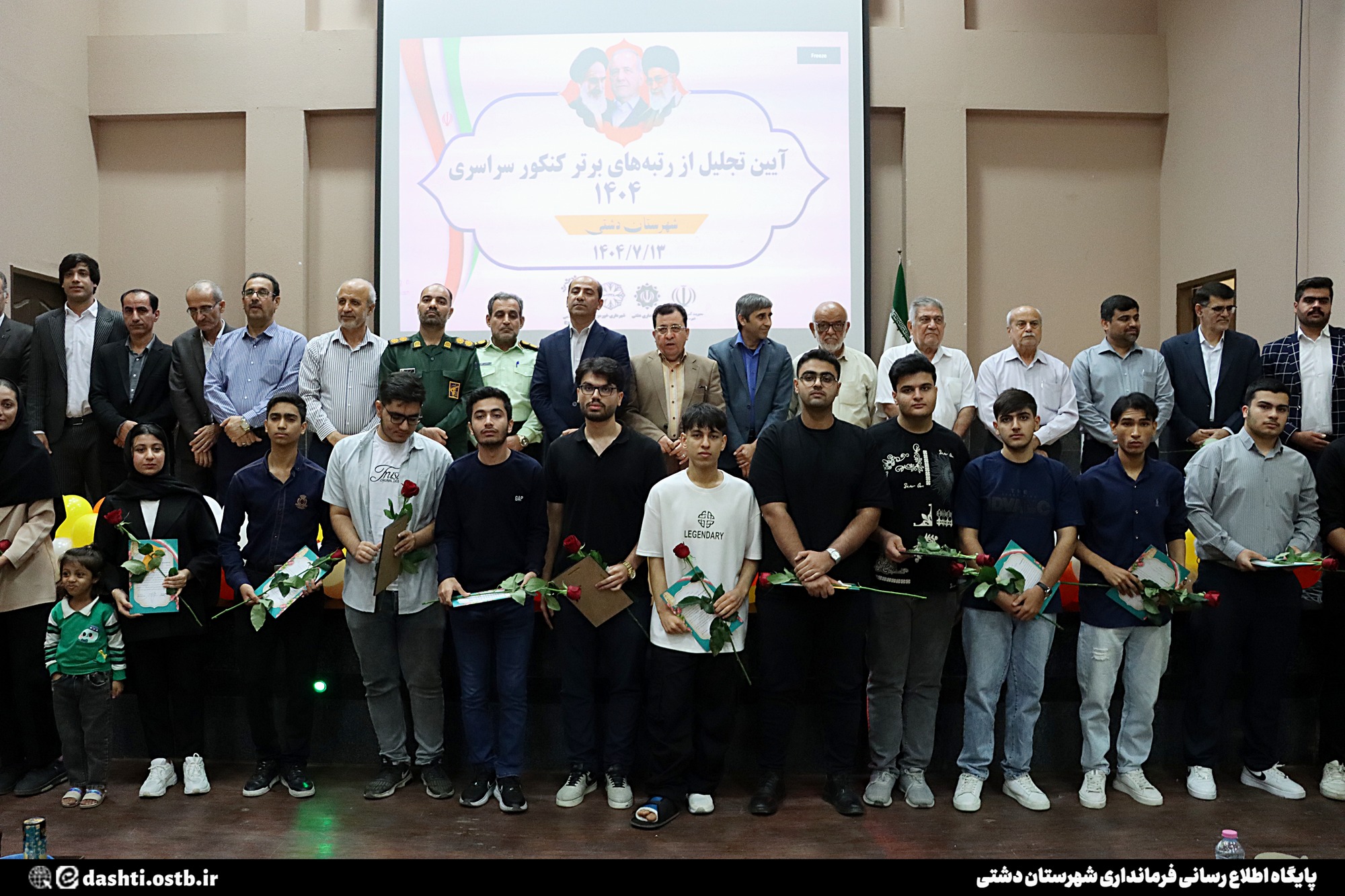 مراسم تجلیل از برترین‌های کنکور سراسری در شهرستان دشتی با حضور فرماندار دشتی، جمعی از مسئولان، فرهنگیان، دانش‌آموزان و خانواده‌های آنان برگزار شد.
