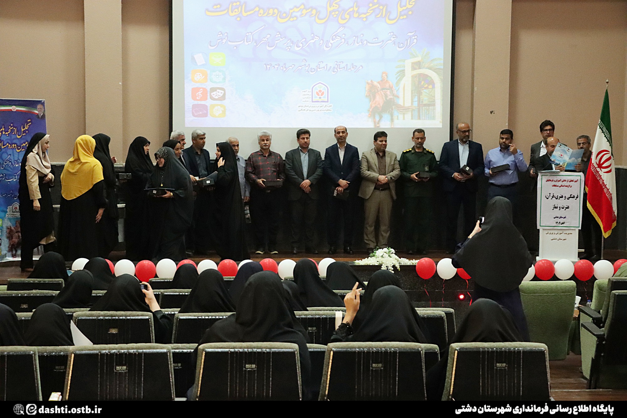 با حضور فرماندار دشتی از نخبه های چهل و سومین دوره مسابقات قرآن،عترت و نماز، فرهنگی و هنری ،پرسش مهر شهرستانهای دشتی و تنگستان تجلیل به عمل آمد 1404/08/06 - 08:26 - تعداد بازدید: 91 - تعداد بازدیدکننده: 81 - کد خبر : 44877 - گروه خبری : فرماندار - تعداد نظرات : 0