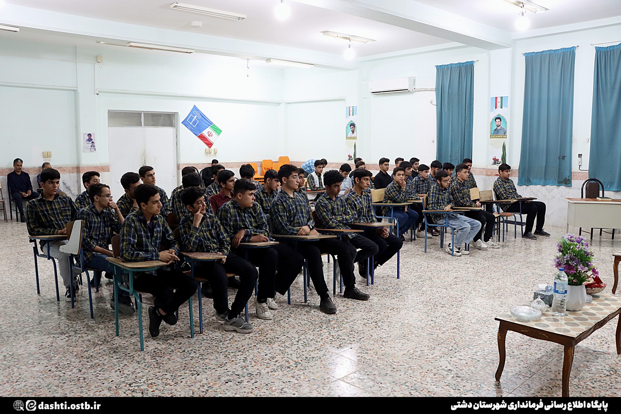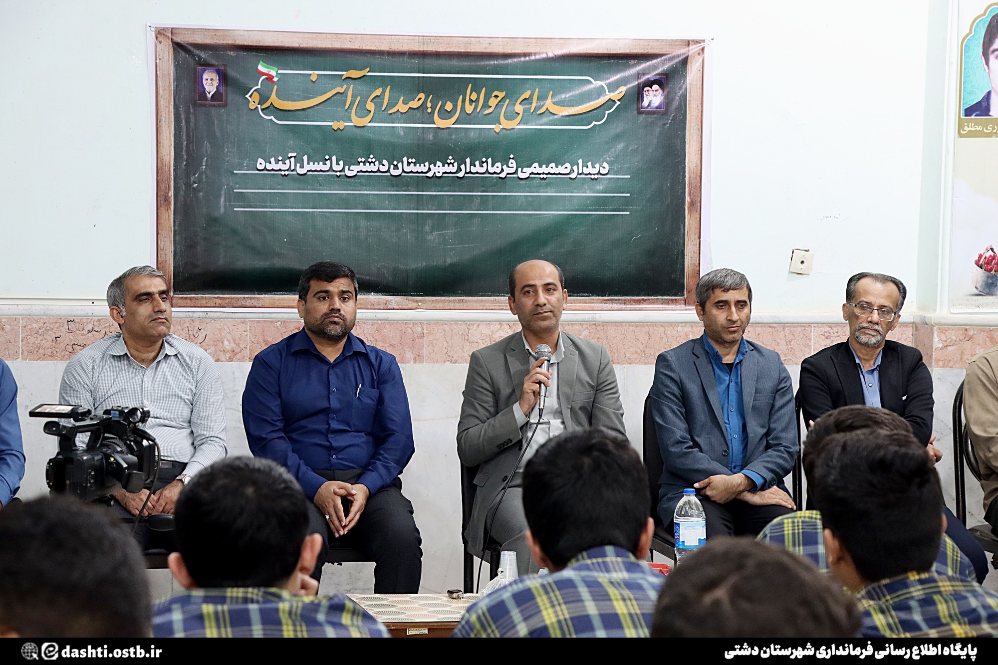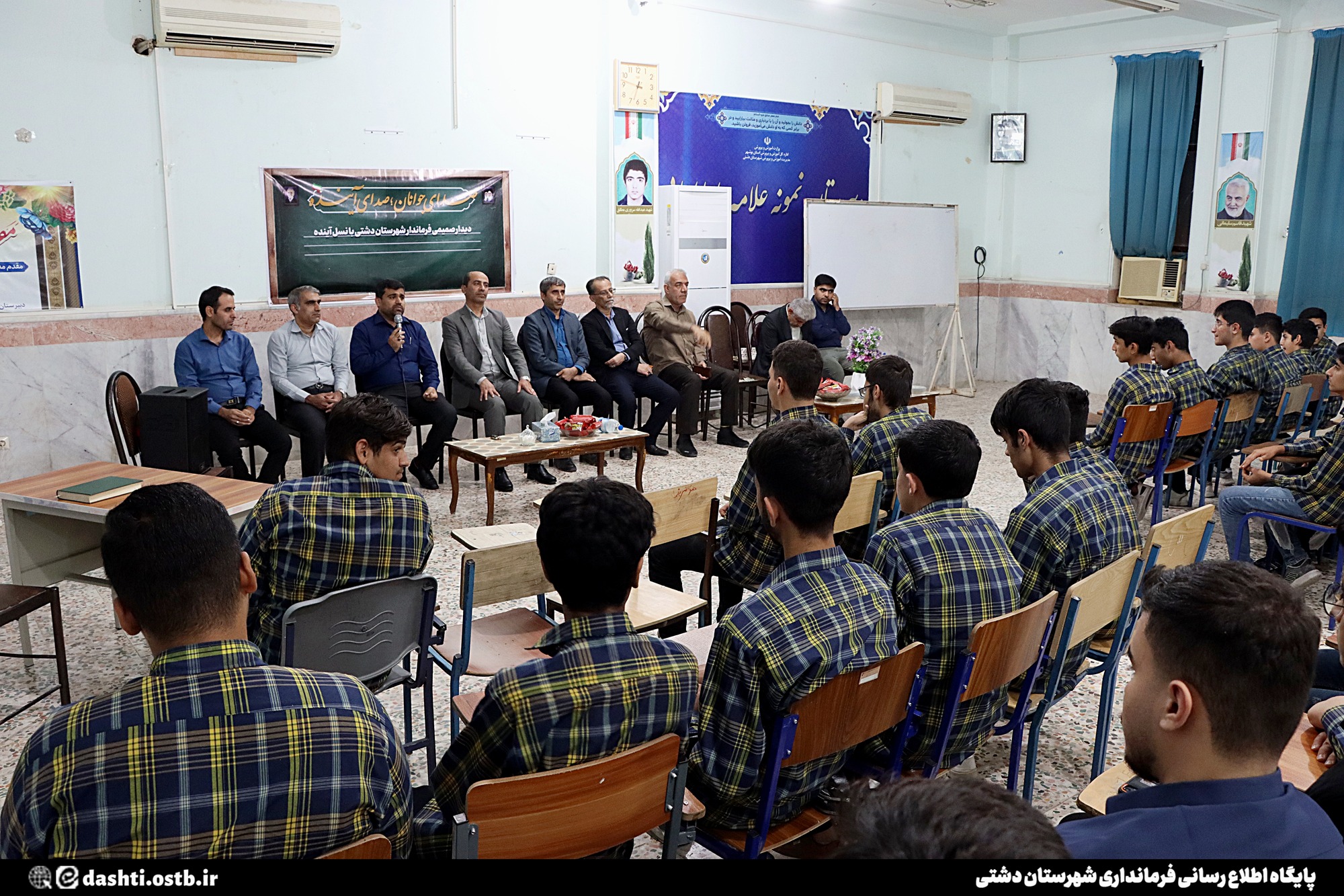 رضا مقاتلی در نشست با دانش‌آموزان دبیرستان نمونه علامه طباطبایی خورموج که در قالب طرح «صدای جوانان، صدای آینده» برگزار شد، ضمن تبریک روز دانش‌آموز و موفقیت علمی بزرگ دانش‌آموزان دشتی در کنکور سراسری امسال، اظهار داشت:دانش‌آموزان باید افق دید خود را گسترش دهند، روحیه مطالبه‌گری داشته باشند و در کنار بیان مطالبات، جانب انصاف را رعایت کرده و راهکارهای مناسب ارائه دهند تا تراز خود به عنوان دانش آموز فعال و توانمند را ارتقاء دهند.
