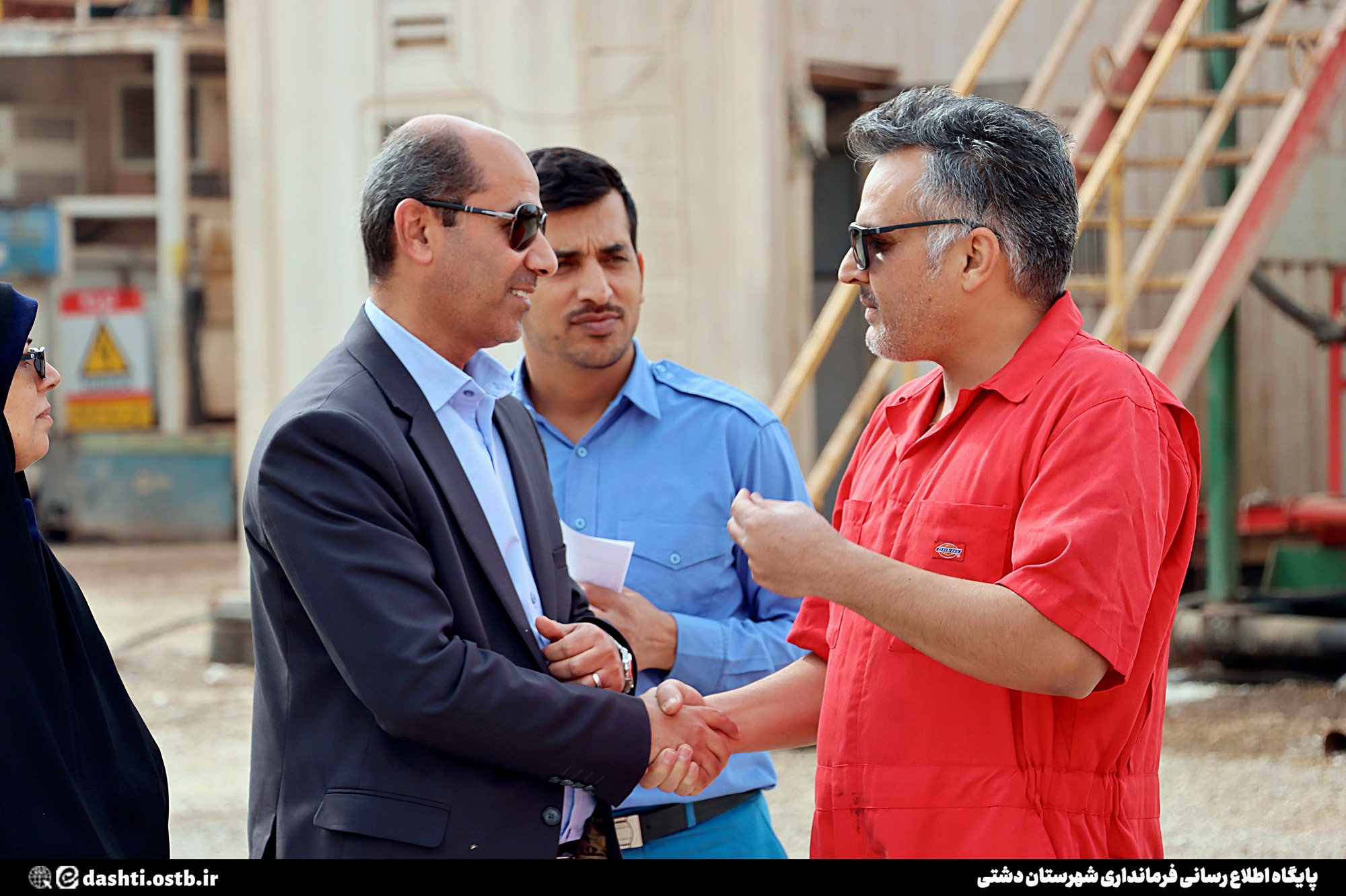 در این بازدید که با همراهی جمعی از مدیران شهرستان و کارشناسان فنی وزارت نفت انجام شد، فرماندار دشتی با حضور در بخش‌های مختلف پروژه، از جمله کارگاه‌های عملیاتی، سایت‌های حفاری، مسیرهای انتقال و بخش‌های تجهیزاتی، با متخصصان، مهندسان و کارگران گفت‌وگو کرد و در جریان جزئیات اجرای کار قرار گرفت.
