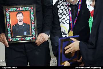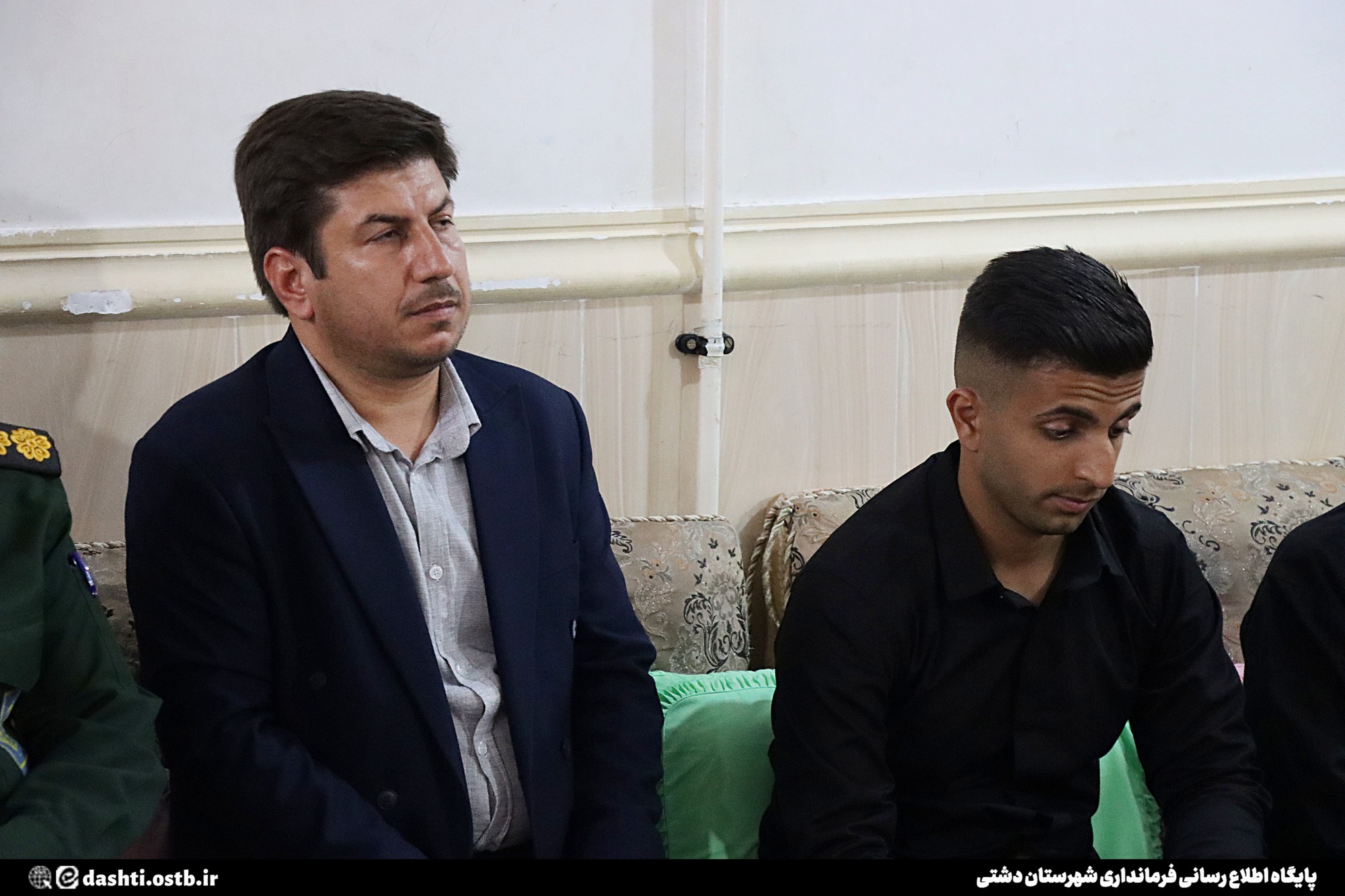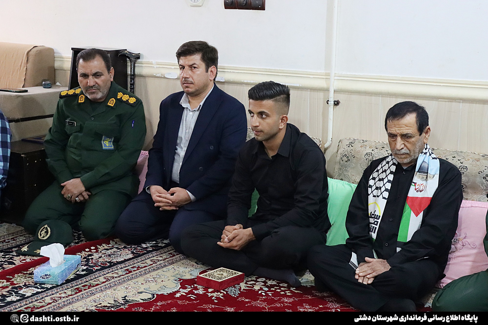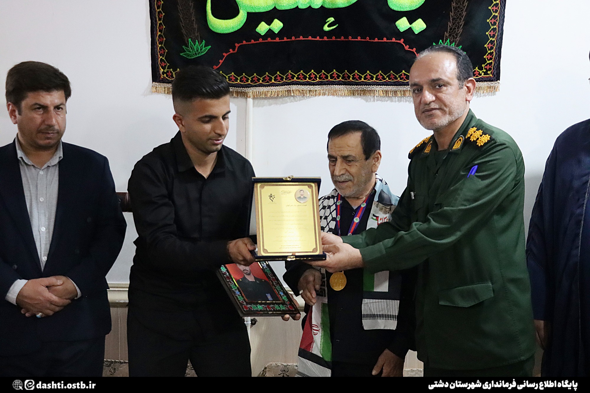 اهدای مدال قهرمانی کشور به خانواده شهید ایمان قایدی در شهرستان دشتی