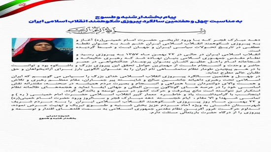پیام بخشدار شنبه و طسوج به مناسبت چهل و هفتمین سالگرد پیروزی شکوهمند انقلاب اسلامی