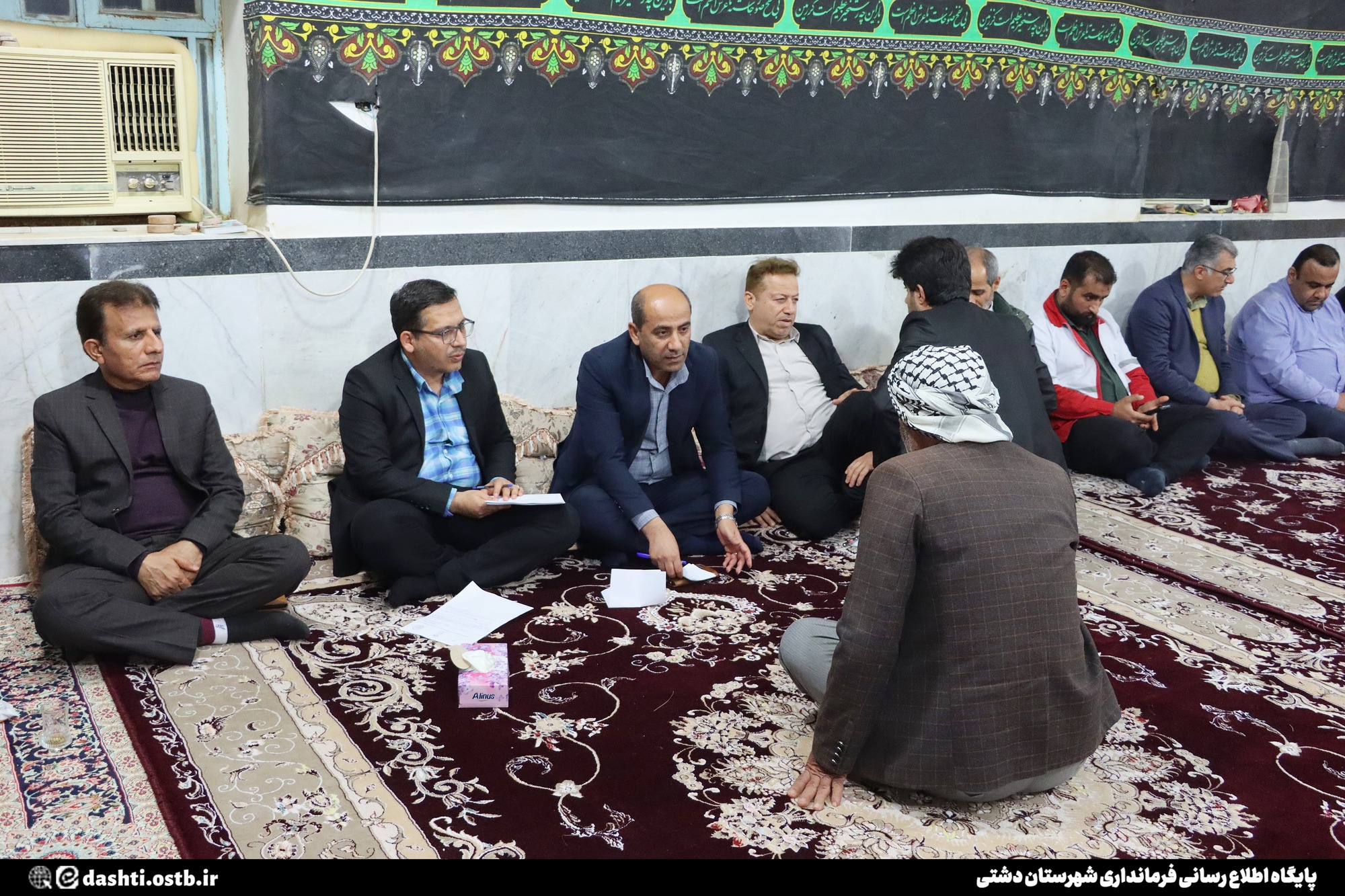 فرماندار دشتی در این بازدید با حضور در میان مردم و گفت‌وگو با اهالی، بر ضرورت رسیدگی به نیازهای آنان و پیگیری پروژه‌های عمرانی، خدماتی و زیرساختی در این روستا تأکید کرد.