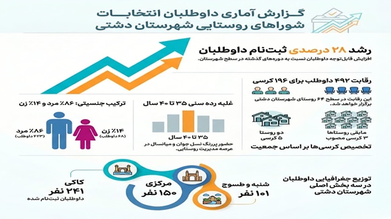 اینفوگرافیک| گزارش آماری داوطلبان انتخابات شورای روستایی شهرستان دشتی